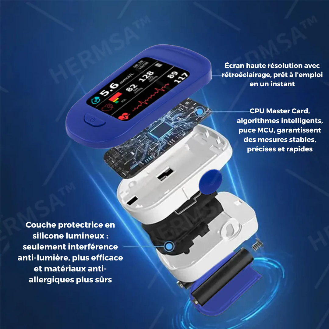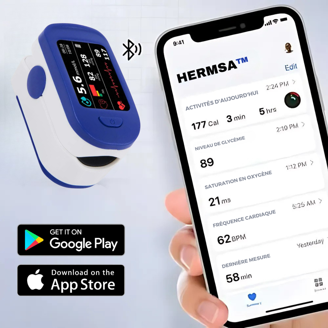 Hermsa Oxymètre Indolore – Mesurez votre glycémie sans vous piquer le doigt